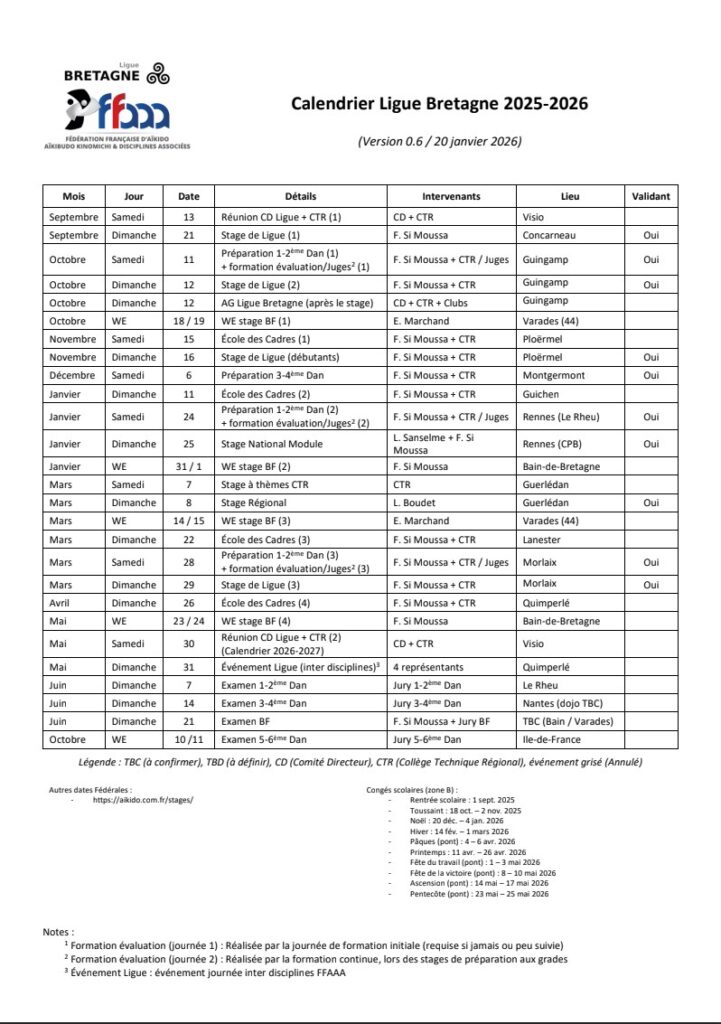 Calendrier de la https://www.aikido-bretagne.fr/calendrier/ (Version mise à jour 16 Oct 2025) :