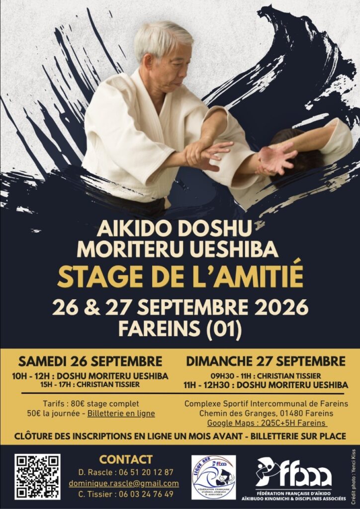 Stage de l’amitié dans l’Ain à Fareins animé par le Doshu Moriteru Ueshiba et Christian Tissier :